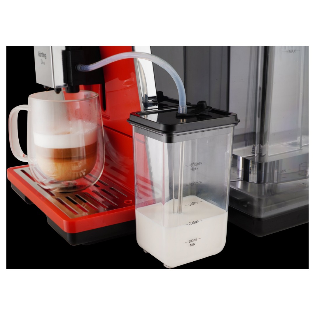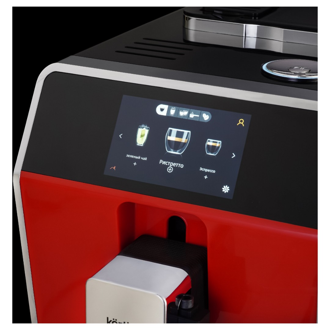 Кофемашина KACM 2005 Diva, выполненная в красном цвете, имеет 35 автопрограмм для приготовления напитков. Кроме того, она предлагает свыше двухсот индивидуальных настроек с возможностью их сохранения. Выбор напитка и настройки, включая подбор объема кофе и молочной пены, осуществляется на цветном сенсорном дисплее. Автоматический капучинатор позволяет готовить напитки с молоком нажатием одной кнопки. Он работает в паре с независимым контейнером для молока обёъемом 500 мл, который можно хранить в холодильнике. Разборная конструкция значительно упрощает обслуживание и продлевает срок службы прибора. Для дополнительного удобства кофемашиной можно управлять как при помощи сенсорного дисплея, так и при помощи дискового джойстика. Регулировка высоты дозатора для чашки также производится вручную, что позволяет готовить напитки в посуде с разными размерами.