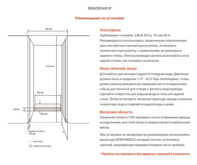 - Комплект боковых панелей при установке не заподлицо: SKSFK800CS