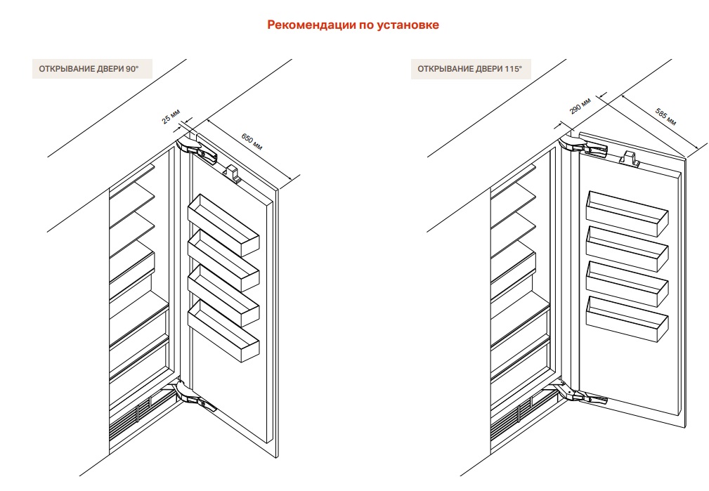 Если вы навесите мебельный фасад, то они полностью интегрируются в вашу кухню. Также можно установить камеры в нишу с дверями из нержавеющей стали. Еще один вариант – установить холодильные камеры отдельно.